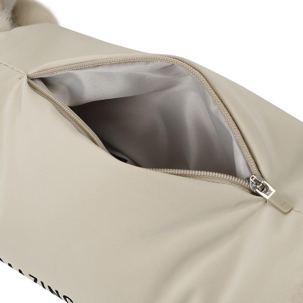 - 핫팩 수납이 가능한 상단 지퍼 포켓과 양쪽 퍼트리밍 디테일의 워머 제품